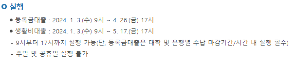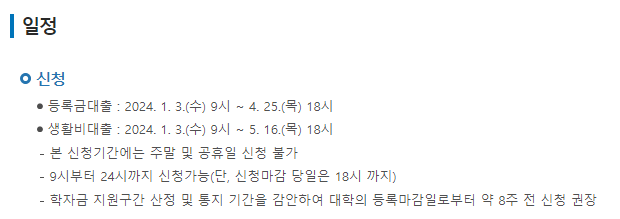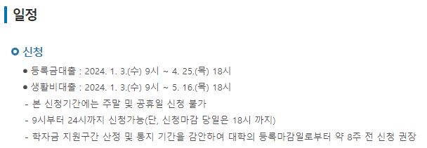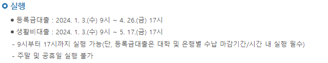 ● 1월 3일(수)부터 신청‧접수 실시, 등록금대출은 4월 25일(목)까지, 생활비대출은 5월 16일(목)까지 신청 가능